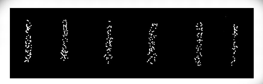 – W ten sposób całkowicie wyeliminowano interferencję między cząstkami, które przedostawały się przez szczeliną pojedynczo, jedna za drugą. A detektory rejestrowały miejsca, w których fotony zderzyły się z ekranem. I po kilku godzinach uzyskano taki oto rezultat.